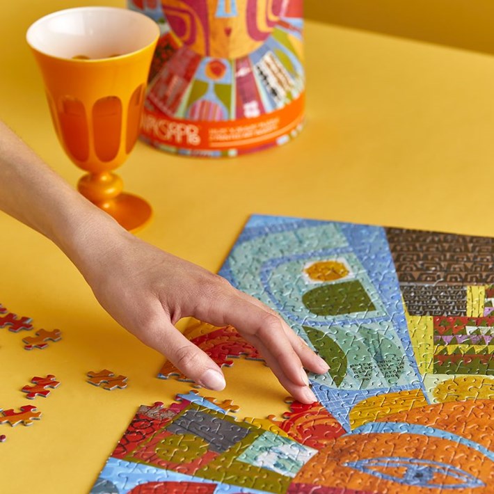 Description: 1000 Piece Jigsaw Puzzle - Assembled size - 19.25 inches wide x 26.625 inches high - Ribbon cut pieces - ESKA® 100% recycled board & non-toxic vegetable-based ink - Includes 2 reference art inserts - Shipped in a reusable tube - Recommended age is 13+ years - All of our puzzles originate from original works of art created by our extremely talented network of emerging and established artists. Each puzzle purchase supports our global community of artists with a percentage of proceeds donated to art education and enrichment programs and initiatives