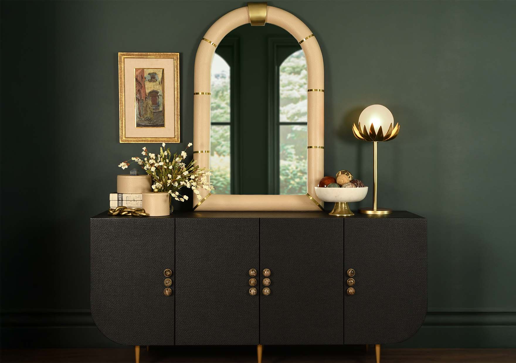 Worlds Away incorporates rich textiles, colored lacquer, lucite, grass cloth, and more to put a modern twist on seamless décor style. Shop tables, seating, wall art, case goods, accessories, and more.