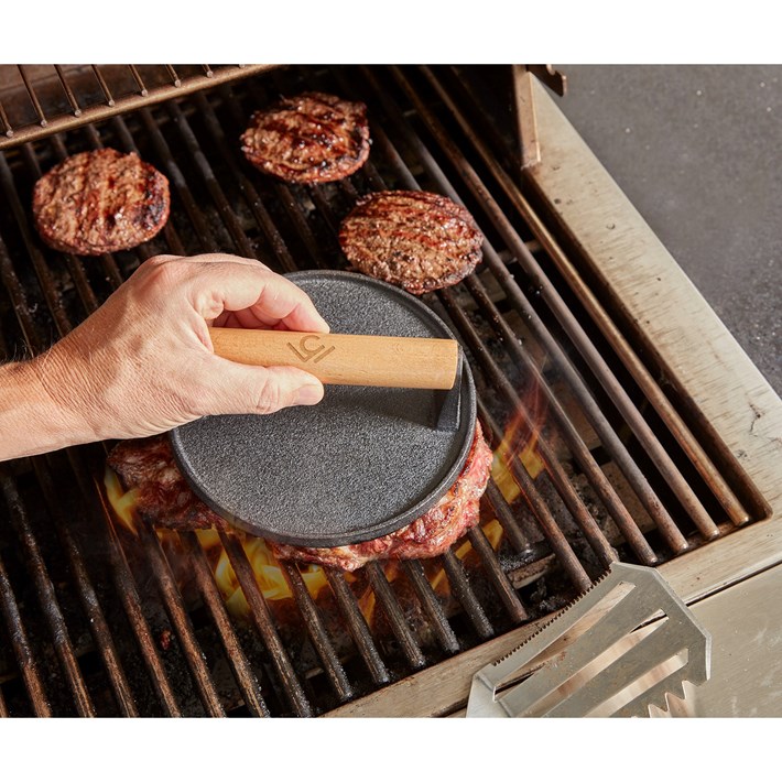 Description: Elevate your grilling experience with our Cast Iron Burger Press Kit. Crafted from durable cast iron, this kit includes a spherical press measuring 7" in diameter and a rectangular press measuring 4" x 8". The beechwood handle provides a comfortable grip while shaping your burgers to perfection. Hand wash only to maintain the quality of this essential grilling tool. Impress your friends and family with perfectly shaped burgers every time, and become the ultimate grill master with our Cast Iron Burger Press Kit.