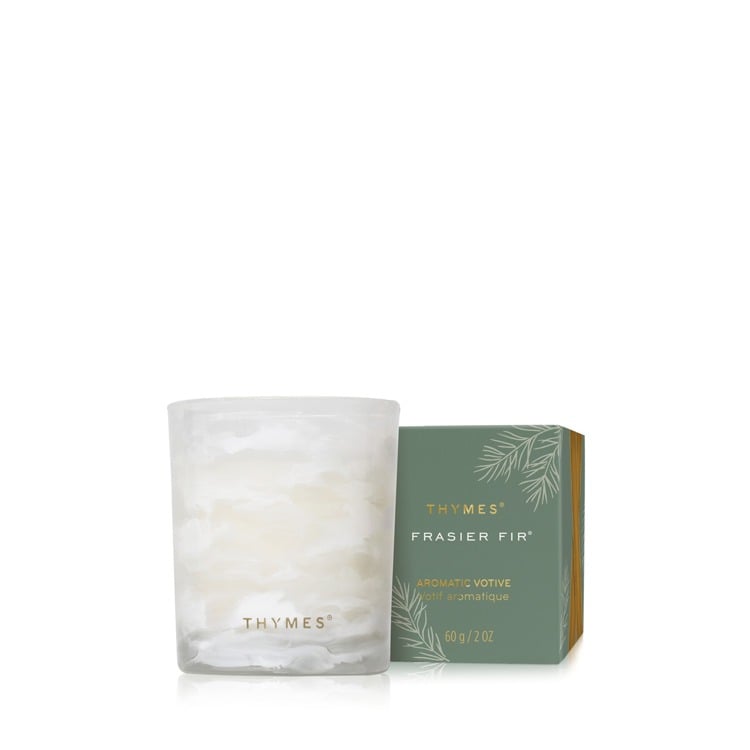 Bring the comforting scent of the forest indoors with the Thymes Frasier Fir Aromatic Votive Candle. This beautifully crafted candle comes in a frosted glass holder, adding a touch of elegance to any space. Its fresh, woodsy fragrance instantly evokes a serene, cozy atmosphere—perfect for unwinding after a long day or adding a festive note to gatherings. Long-lasting and richly scented, this votive candle is an inviting addition to your decor and makes a thoughtful gift for anyone who loves the crisp scent of evergreens.