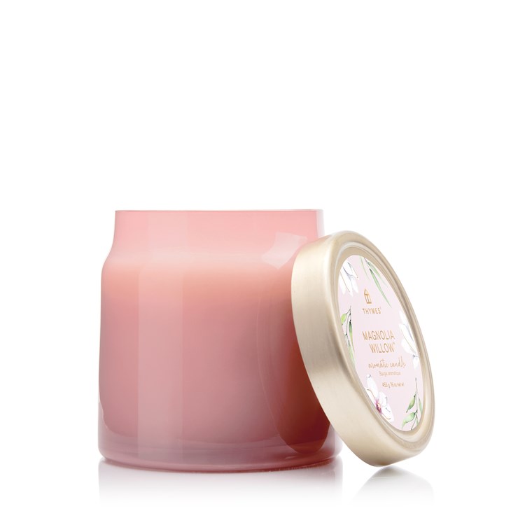 Description: Dewy magnolia blossoms, sheer mandarin, and crushed jasmine leaves bloom into a refreshing, floral fragrance while the beautiful soft pink glass vessel makes the perfect home accent piece.