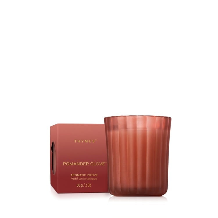 Transform any space into a cozy retreat with the Thymes Pomander Clove Aromatic Votive. This beautifully crafted candle blends warm clove and sweet citrus, filling your room with an inviting, comforting aroma. Its chic, ribbed glass holder adds a touch of elegance to your décor, while the premium wax ensures a clean, even burn every time. Ideal for enhancing relaxation or setting the mood for gatherings, this votive makes self-care and ambiance effortless—let its fragrance turn ordinary moments into something special.