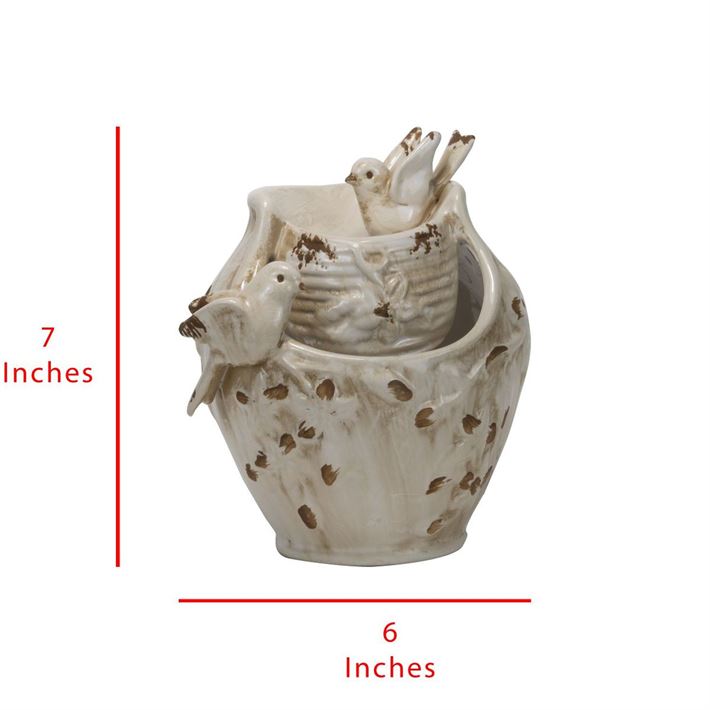 The Foreside Ivory Birds Fountain is a beautiful and unique addition to any bird lover's collection. Made of durable ceramic, this fountain combines the charm of a birdbath with the soothing sounds of a well. The distressed finish adds depth and character to the piece, making it a stunning focal point in any home or office. Easy to maintain, this fountain is a perfect gift for anyone who enjoys the beauty of nature and the peaceful presence of birds. Bring the beauty of the outdoors inside with the Foreside Ivory Birds Fountain today!