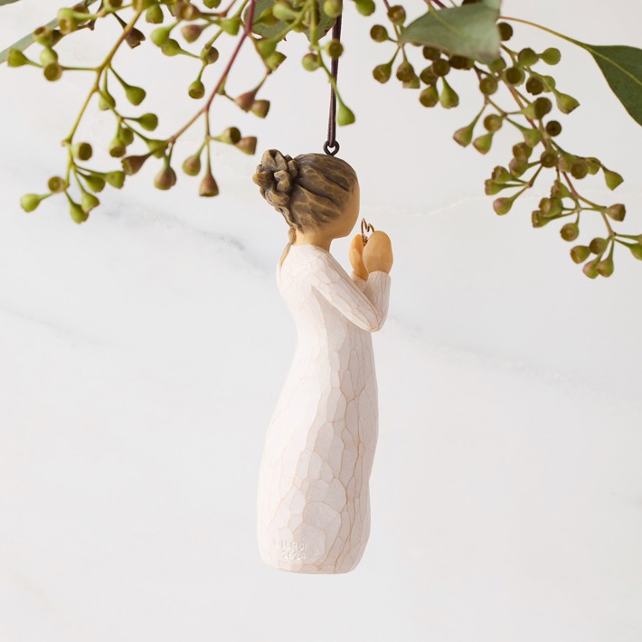 Description: 20th in our series of Willow Tree Dated Ornaments. Holding the year in a thin shimmery heart fashioned of golden wire, this figural ornament is a commemorative way to keep memories of special events close, and the people you love even closer.